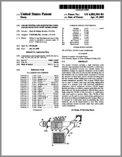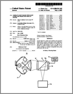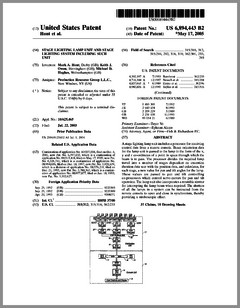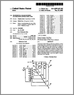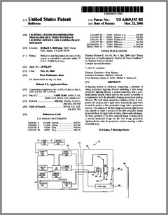 6897622 | Incremental Color Blending Illumination System Using LEDs | US | Lister | Mattel | 05-24-2005 | 6896374 | Projection Arrangement | US | Piehler | Carl Zeiss Jena | 05-24-2005 | 6897624 | Packaged Information Systems | US | Lys, Ducharme | Color Kinetics | 05-24-2005 | 6893139 | Adjustable Fluorescent Lighting Fixtures | US | Cercone, Katz | | 05-17-2005 | 6894443 | Stage Lighting Lamp Unit and Stage Lighting System Including Such Unit | US | Hunt, Owen, Hughes | Production Resource Group | 05-17-2005 | 6891656 | Pixel Based Gobo Record Control Format | US | Hunt | Production Resource Group | 05-10-2005 | 6891686 | Medium for a Color Changer | US | Hewlett | Production Resource Group | 05-10-2005 | 6888322 | Systems and Methods for Color Changing Device and Enclosure | US | Dowling, Mueller, Lys | Color Kinetics | 05-03-2005 | 6886941 | Compact Light Engine With Light Guides For Projection Display System | US | Janssen | Philips | 05-03-2005 | 6886944 | Projector Brightness Enhancement Using Rectilinear Apertures | US | Dahlgren | Hewlett-Packard | 05-03-2005 | 6883929 | Indication Systems and Methods | US | Dowling | Color Kinetics | 04-26-2005 | 6885505 | Integrally Bonded Gobo | US | Sahm, Sahm, Blackiston | Gobos Togo | 04-26-2005 | 6882374 | Image Projection System | US | Kensuke Numakoshi | Yamaha | 04-19-2005 | 6882384 | Color Filters and Sequencers Using Color Selective Light Modulators | US | Sharp | ColorLink | 04-19-2005 | 6880962 | LED Light Source Mimicking a Filamented Lamp | US | Coushaine, Sidwell, Tucker, Tessnow | Osram Sylvania | 04-19-2005 | 6882111 | Strip Lighting System Incorporating Light Emitting Devices | US | Kan, Weston | TIR Systems | 04-19-2005 | 6880956 | Light Source With Heat Transfer Arrangement | US | Zhang | Lightech | 04-19-2005 | 6871982 | High-Density Illumination System | US | Holman | Digital Optics International Corporation | 03-29-2005 | 6869193 | Lighting System Incorporating Programmable Video Feedback Lighting Devices and Camera Image Rotation | US | Belliveau | | 03-22-2005 | 6870325 | LED Drive Circuit and Method | US | Bushell, Worgan | Oxley Developments | 03-22-2005 |