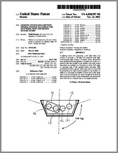 6820997 | Lighting System and Lamp with Optimal Position Placement for Television, News and Motion Picture Studio | US | Bissada | | 11-23-2004 |