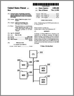 5983280 | System Using Standard Ethernet Frame Format for Communicating MIDI Information Over and Ethernet Network | US | Hunt | Light & Sound Design | 11-09-1999 |