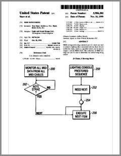 5986201 | Midi Monitoring | US | Starr, Hunt | Light & Sound Design | 11-16-1999 |
