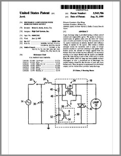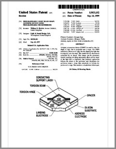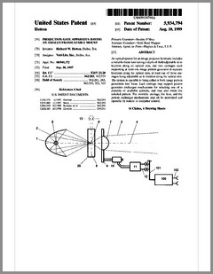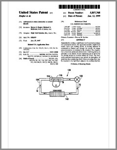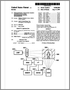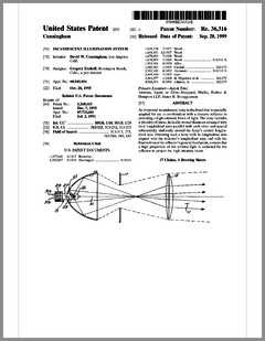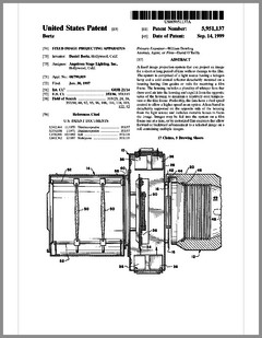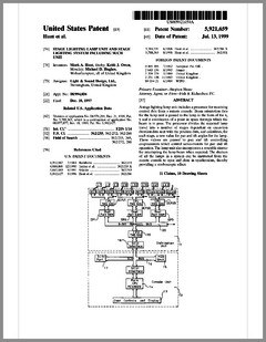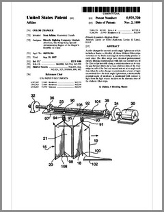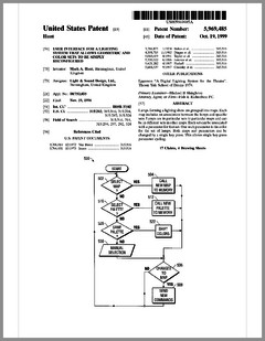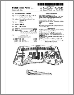 D416235 | Lighting Control Console | US | Hanesworth, Sund | Electronic Theatre Controls | 11-09-1999 | 5975720 | Color Changer | US | Adkins | Ricardo Lighting Company | 11-02-1999 | 5969868 | Sequential Cross-Fading Color Filters and System | US | Bornhorst, Hutton | Vari-Lite | 10-19-1999 | 5969485 | User Interface for a LIghting System that Allows Geometric and Color Sets to be Simply Reconfigured | US | Hunt | Light & Sound Design | 10-19-1999 | D415301 | Adjustable Compact Luminaire | US | Stacy, Hanson, Terleski | Vari-Lite | 10-12-1999 | D414888 | Adjustable Compact Luminaire | US | McNatt, Outland, Brunson | Vari-Lite | 10-05-1999 | 5959768 | Light Pattern Generator Formed on a Transparent Substrate | US | Hutton | Vari-Lite | 09-28-1999 | Re36316 | Incandescent Illumination System | US | Cunningham | Esakoff | 09-28-1999 | D413995 | Yoke Assembly for Adjustable Lumiaire | US | Lee, Outland, Terleski, Mininger | Vari-Lite | 09-14-1999 | 5953151 | Programmable Light Beam Shape Altering Device Using Programmable Micromirrors | US | Hewlett | Light & Sound Design | 09-14-1999 | 5953152 | Programmable Light Beam Shape Altering Device Using Programmable Micromirrors | US | Hewlett | Light & Sound Design | 09-14-1999 | 5951137 | Fixed Image Projecting Apparatus | US | Bortz | Angstrom Stage Lighting | 09-14-1999 | 5945786 | Discharge Lamp Igniter with Reduced Noise Output | US | Jurek | High End Systems | 08-31-1999 | 5940204 | Programmable Light Beam Shaped Altering Device Using Programmable Micromirrors | US | Hewlett | Light & Sound Design | 08-17-1999 | 5934794 | Projection Gate Apparatus Having an Axially-Translatable Mount | US | Hutton | Vari-Lite | 08-10-1999 | 5921659 | Stage Lighting Lamp Unit and Stage Lighting System Including Such Unit | US | Hunt, Owen, Hughes | Light & Sound Design | 07-13-1999 | 5857768 | Apparatus for Cooling a Light Beam | US | Ziegler, Belliveau | High End Systems | 06-12-1999 | D409771 | Environmental Housing for Automated Luminaire | US | Stultz | High End Systems | 05-11-1999 | 5900685 | Anti-Noise System for a Moving Object | US | Evans, Hewlett | Light & Sound Design | 05-04-1999 | 5893636 | Studio Lighting Fixture | US | Babineaux | | 04-13-1999 |