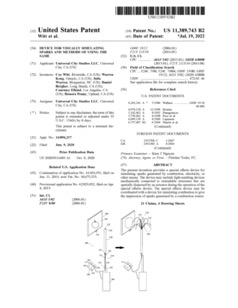 11389743 | Device for Visually Simulating Sparks and Methods of Using the Same | US | Witt, Kong, Warren, Bergher, Elkind, Penny | Universal City Studios | 07-19-2022 |