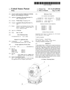 11421858 | Stage Light Having Wireless Power Signal Transmission System | US | Jiang | Guangzhou Haoyang Electronic Co. (Golden Sea) | 08-23-2022 |