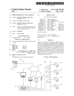 11436792 | Three-Dimensional Stage Mapping | US | Buys | Electronic Theatre Controls | 09-06-2022 |