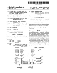 11404610 | Light Fixture with Broadband and Narrow Band Emitters | US | Wood, Cahalane | Electronic Theatre Controls | 08-02-2022 |
