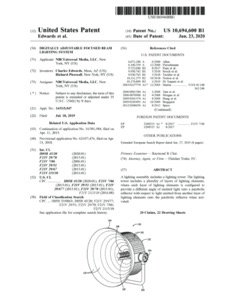 10694600 | Digitally Adjustable Focused Beam Lighting System | US | Edwards. Pierceall | NBC Universal Media and Cineo Lighting | 06-23-2020 |