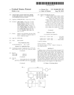 10136123 | Display System with Normalized Show Lighting for Wavelength Multiplex Visualization Environment | US | Reichow, Kosakura, Tait | Disney Enterprises | 11-20-2018 | 10125953 | Stage Light Fixture, In Particular Multisource Stage Light Fixture | US | Quadri, Campetella | Clay Paky | 11-13-2018 | 10129964 | Wireless Tool and Methods for Controlling and Testing Systems | US | Fails, Kleissler, Vigni | City Theatrical | 11-13-2018 | 10111295 | Methods and Improvements to Spectral Monitoring of Theatre Lighting Devices | US | Belliveau | | 10-23-2018 | 10111309 | Lighting Control Console Having a Slide Control | US | Adenau | MA Lighting Technology | 10-23-2018 | 10094542 | Portable Multi-Function Lighting System | US | Chauvet, Reiss, Airriess | Chauvet and Sons | 10-09-2018 | 10088111 | Collapsible LED Fixture | US | Hudson | Hudson Spider | 10-02-2018 | 10088141 | Light Assembly for Producing Scenographic Effects | US | Venturati | Clay Paky | 10-02-2018 | 10082280 | Theatre Light Apparatus and Method Incorporating a Plurality of Light Sources with Anti-Collision | US | Belliveau | Electronic Theatre Controls | 09-25-2018 | 10077868 | Truss Adapter for Mounting Objects on Space Frame Truss | US | Chouinard | Entertainment Structural Products | 09-18-2018 | 10077881 | Prism Effect System Comprising Multi-Regional Color Filter and Multi-Faceted Prism | US | Hansen, Kildeby | Martin Professional | 09-18-2018 | 10077885 | Iris Diaphragm System | US | Hansen | Martin Professional | 09-18-2018 | 10077888 | Projector of Light Beams with Adjustable Optical Bodies | US | Latteo | D.T.S. Illuminazione | 09-18-2018 | 10079506 | System and Method for Distribution of Electrical Power and Control Data in Temporary Lighting Installations | US | Kolsky, Seidmann, Bruns | Philips Lighting | 09-18-2018 | 10072801 | Collimation and Homogenization System for an LED Luminaire | US | Jurik, Valchar | Robe Lighting | 09-11-2018 | 10072834 | Cooling Module for LED Light Fixture | US | Kjaer, Daslgaard | Martin Professional | 09-11-2018 | 10076017 | Method for Creating Ambience Lighting Effect Based on Data Derived from Stage Performance | US | Van Herpen | Philips Lighting | 09-11-2018 | 10060583 | Adjustable Light Emitting Diode Luminaire Device and System for Customized Installation | US | Mellor, McIntyre, Zanoni, Smith, Ebido, Black, Clark, Toale | Finelite | 08-28-2018 | 10060614 | Method for Displaying Image Contents at a Lighting Control Console | US | Cordes, Adenau | MA Lighting Technology | 08-28-2018 | 10049835 | Stage Curtain Motorized Rigging Limit Switch | US | Guerra, Dye, Scholl | Texas Scenic Company | 08-14-2018 |
