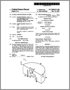 7855511 | Plasma Lamp With Phase Control | US | Espiau, Chang, DeVincentis | Luxim | 12-21-2010 |
