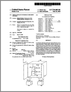 7761803 | Virtual Reality Interface for Show Control | US | Parker, Hewlett | Production Resource Group | 07-20-2010 |