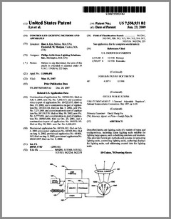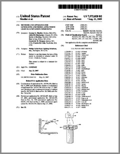 7572028 | Methods and Apparatus for Generating and Modulating White Light Illumination Conditions | US | Mueller, Ducharme, Dowling, Lys, Morgan, Cella | Philips SSL | 08-11-2009 |