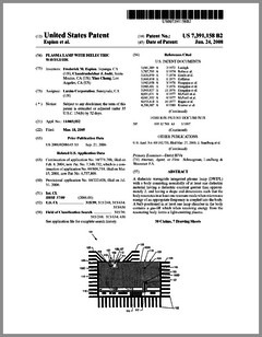 7391158 | Plasma Lamp With Dielectric Waveguide | US | Espiau, Joshi, Chang | Luxim | 06-24-2008 |