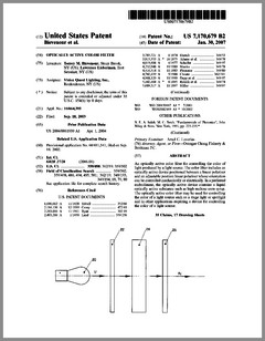7170679 | Optically Active Color Filter | US | Bievenour, Lieberman | Vision Quest Lighting | 01-30-2007 |